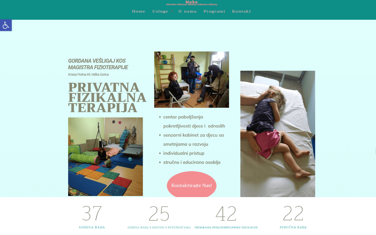 Stranica MAKA prikazuje privatnu fizikalna terapija pod vodstvom magistre fizioterapije Gordane Vešligaj Kos. Stručno i educirano osoblje provodi nekoliko programa pa tako postoje; centar poboljšanja pokretljivosti djece i odraslih, senzorni kabinet za djecu sa smetnjama u razvoju, individualni pristup