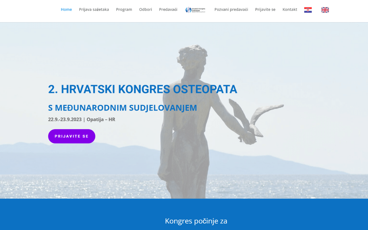 Stranica Kongres Osteopatija prikazuje 2. Hrvatski osteopatski kongres s međunarodnim sudjelovanjem, održan u Opatiji. Događaj uključuje predavanja, radionice, prezentacije i panele fokusirane na nove metode i modele u osteopatiji, posebno u kontekstu pandemije.