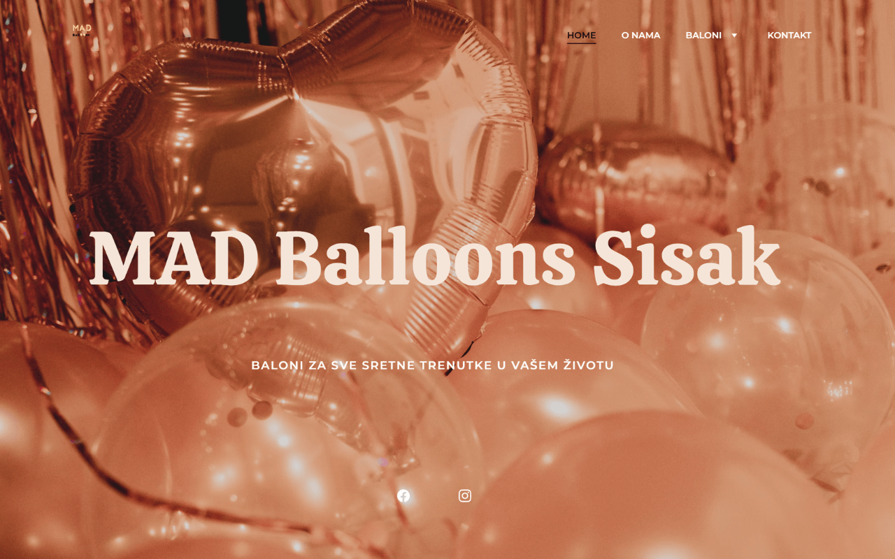 Stranica Mad Balloons Sisak naglašava usluge koje nudi tvrtka za balonske dekoracije. Specijalizirani su za izradu prilagođenih balonskih aranžmana za razne događaje, uključujući rođendane, vjenčanja i korporativne funkcije.